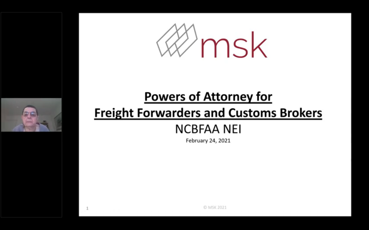On February 24, 2021, MSK Partner Susan Kohn Ross presented via live webinar on "Powers of Attorney for Freight Forwarders and Customs Brokers." Please enjoy a recording of this webinar and contact skr@msk.com with any questions pertaining to powers of attorney from business partners.